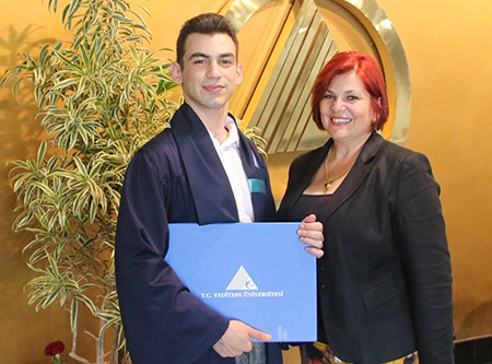 Almanya’ya ayak bastığında ise havaalanında karşılayarak yurduna yerleştiren, oradaki yaşam şartlarını yerine getirmesi için bizzat uğraşan, rehberlik eden, ders seçimlerinde önerileri ile oğluma yol gösteren, Almanya da kaldığı süre için de akademik ve sosyal yaşam koçluğu yapan ve tüm bunları yaparken de adeta ailesinin sıcaklığını yaşatarak kendini yalnız hissetmemesini sağlayan yine oğlumun sevgili Tülin ablası oldu.